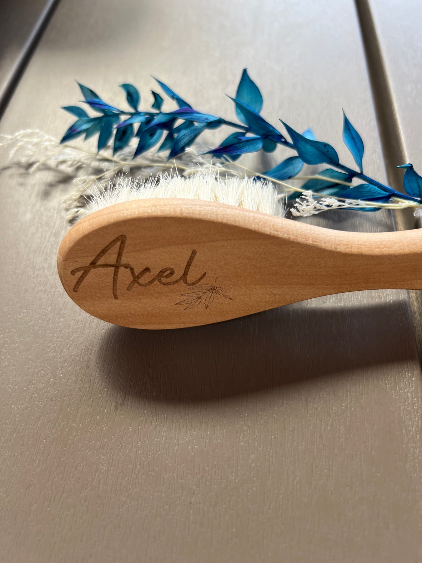 Laser Engraved Super Soft Beautiful personalised wooden baby hair brush.